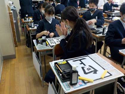 今日は、卒業制作の色紙に清書しました。どの子も心を込めて書いていました。