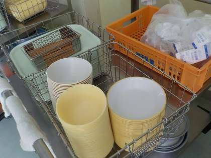 6年生は、給食の食器をペーパーで拭いてきれいにしてから返しています。食器を洗う際に水や洗剤を節約することと、美味しい給食を作っていただいた調理員さんへの感謝の気持ちを表すことを目的としています。当たり前のように見える活動ですが、習慣化しています。