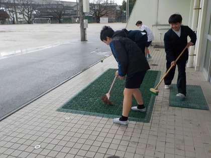 今日は自級清掃でしたが、清掃の終盤、突然、霰が降ってきました。あれよあれよという間に、地面が白くなりました。児童玄関を清掃していた子供たちも驚いていました。