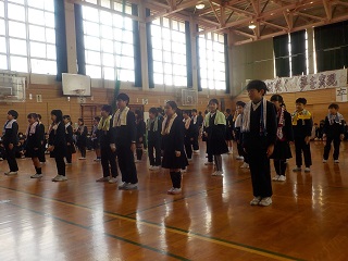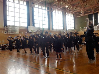 卒業を祝う会では、6年生に楽しんでもらうために3年生は、お祝いのメッセージとダンスをがんばりました。6年生だけでなく、全校でダンスを踊り、大いに盛り上がりました。