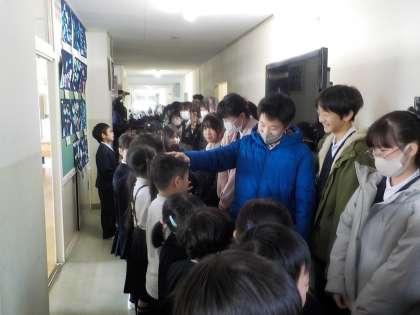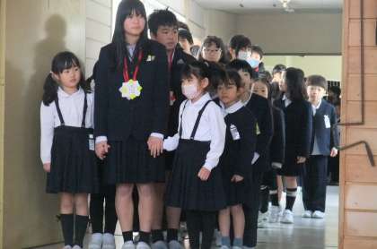 今日は、卒業を祝う集会でした。5年生が企画し、全校児童が一堂に会して、このような会が開かれるのは数年ぶりです。下級生からの感謝の気持ちは6年生一人一人の心に届きました。メダルをかけてもらったり、寄せ書きを手渡してもらったりして、みんなうれしそうでした。