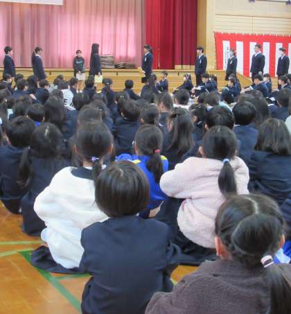 3月12日(火) お話会&児童会引継ぎ式 1年生