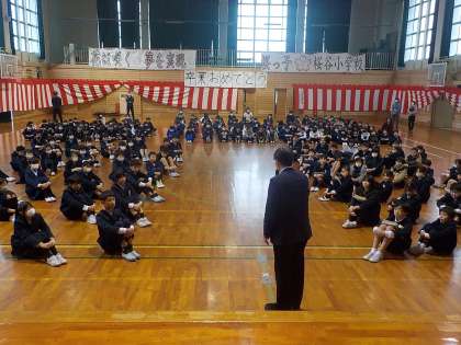 桜っ子タイムは、全校児童が体育館に集まり、児童会引き継ぎ式を行いました。6年生の委員長から5年生の委員会代表者に、思いを伝え、ファイルを渡しました。それを受けて、5年生の代表者が決意を発表しました。