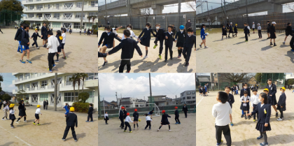 今年度最後のなかよしタイムがありました。花いちもんめや転がしドッジボール、だるまさんがころんだ等で、どの班も楽しく過ごしていました。ふりかえりの時間に、下級生一人一人に、プラバン工作をプレゼントしました。風は少し冷たかったのですが、温かい気持ちになりました。