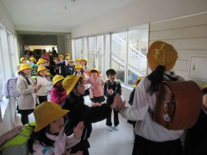今日は6年生にとって小学校最後の下校をする日、そしてほとんどの1年生にとって6年生に会う最後の日でした。全校で花道をつくり6年生を送り出す「花道大作戦」に1年生も加わり、しっかり気持ちを伝えました。