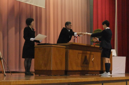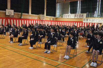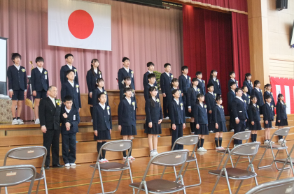 34名、全員揃って卒業証書をいただきました。心を一つにしてのよろこびの言葉、歌。6年間の集大成がここにあります。