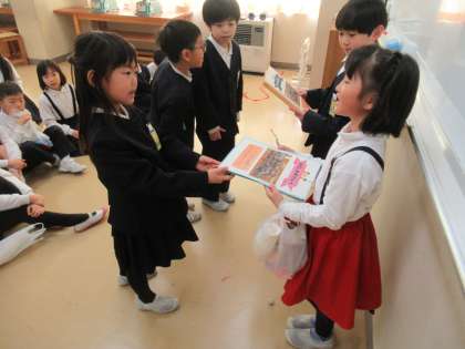 ゲームをしたり、お店屋さんごっこをしたりした後、転校する友達にお手紙と歌のプレゼントを贈りました。