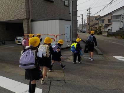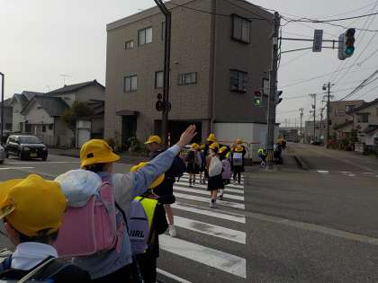 今日から、1年生も加わっての集団登校が始まりました。上級生の班長が、下級生に気を配りながら安全に登校しようという気持ちが伝わってきました。地域のみなさんも、所々で見守ってくださっていました。