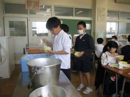 5年生になり、給食のご飯の量が増え、5年生になって初の給食ではご飯がたくさん残ってしまいました。しかし今日は、おかわりをする人がたくさんおり、見事ご飯を全て食べることができました!