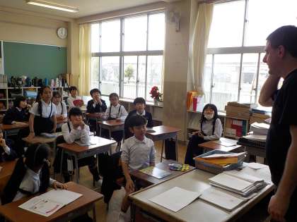 今日は、1組2組ともに、初めての外国語活動がありました。ALTと楽しく授業を行いました。