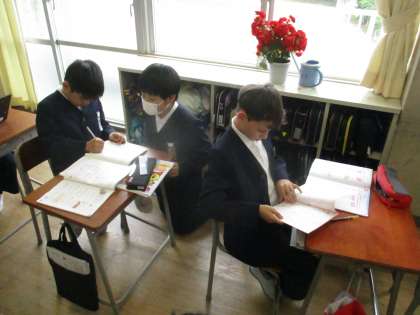 外国語では、金曜日に行う初めてのスピーキングテストも念頭に入れてペア活動に取り組みました。
