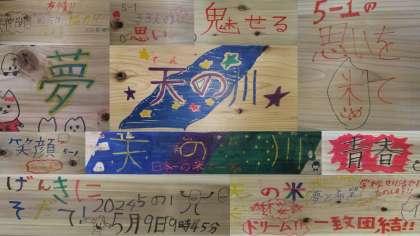 今回は、米作りにかける熱い思いを木枠の板に書き込みました。