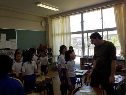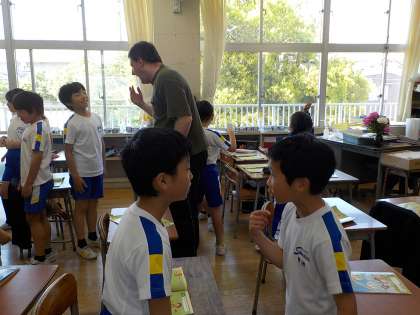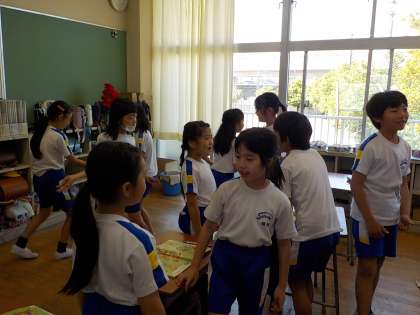 今日の外国語活動の時間、ALTの先生から、「How are you?」「I'm 〜〜.」の表現について教えていただきました。hungryやsleepyなどの自分の調子を表す言葉を学び、クラスの仲間と、会話をする練習もしました。