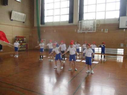1時間目の全校応援練習での課題を踏まえ、5時間目の5・6年生の応援練習で最終調整を行いました。