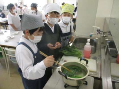 1・2時間目には調理実習があり、「ゆでる」調理について学習しました。