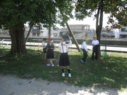 3時間目の国語「日常を十七音で」の学習では、グラウンドに出て、俳句の材料集めをしました。