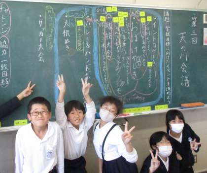 6時間目の「第3回天の川会議」では意見が対立しましたが、よりよい合意形成に向けて「対立で終わるのではなく、新たな考えにつなげていくことが大切」と話をしました。