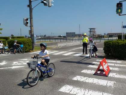 今日は、県交通公園に校外学習に行きました。自転車の安全な乗り方についてお話を聞いたり、実際に自転車に乗ってコースを回ったりしました。コースには、踏み切りや信号機、見通しの悪いT字路等があり、それぞれの場所で気をつけることを教えていただきながら自転車に乗りました。学んだことを生かして、安全に自転車に乗ってくださいね。