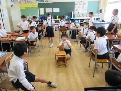 友達と声を掛け合い、助け合いながら、和気あいあいとした雰囲気で実験に取り組む4年生でした。