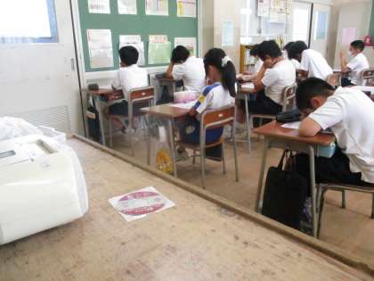 外国語「Unit2 When is your birthday?」のテストでは、真剣に音声に耳を傾けて取り組んでいました。