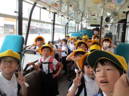 路線バスを利用して、市立図書館に行きました。読み聞かせの後に、好きな本を選んで自分で借りる経験をしました。