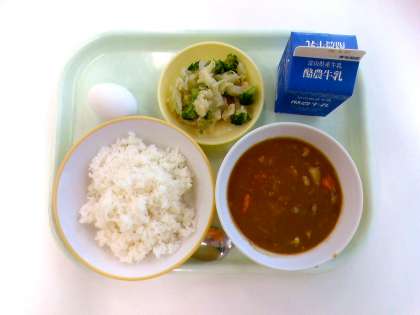 カレーライス、ゆでたまご、花野菜サラダ、牛乳 です。