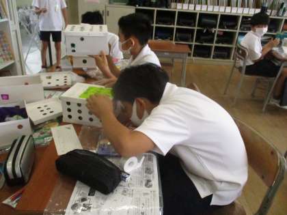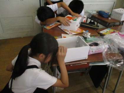 図画工作「のぞいてみると」の学習。今日ものぞいています。