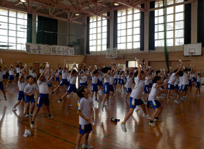 学校巡回公演事前ワークショップとして、ペットボトルに水を入れたものを使ってのダンスにチャレンジしました。みんな楽しそうに踊っていました。本番は11月の予定です。
