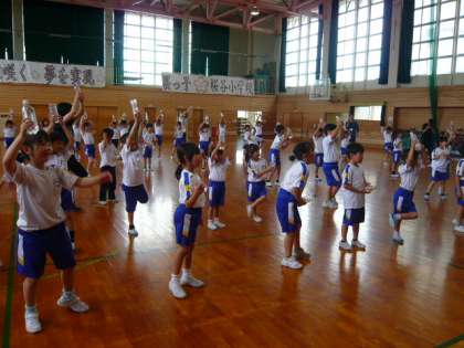 今日は、ペットボトルを使った楽しいダンスを教えていただきました。みんなノリノリでポースをまねしたり、ダンスしたりしました。