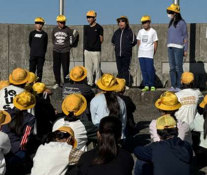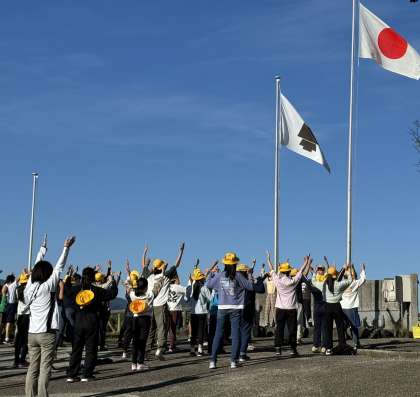 先程、朝のつどいに参加しました。活動紹介では、かけ声で一致団結。今日も37人で「夢に向かってSTEP UP」