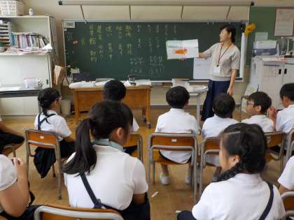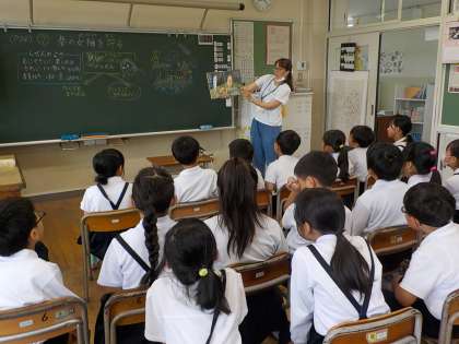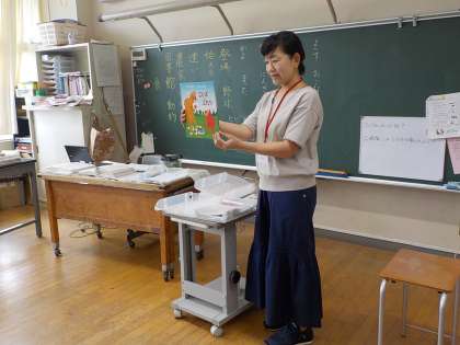 朝のお話会、1組、2組ともに真剣にお話に聞き入っていました。
