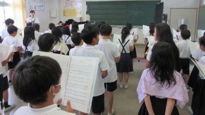 はじめての学年音楽でしたが、どの子供も気合十分で、のびのびと楽しそうに歌う姿が印象的でした。