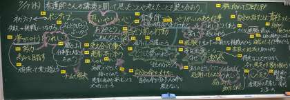 今日は、先週の夢教室で看護師さんの講演を聞いて、思ったことや考えたことなどを聴き合いました。それぞれが自分の心に残ったことを語る中、「大変な仕事だけれど続けられるのはどうしてだろうか」「毎日勉強するのはなぜか」など、自ら問いを見いだし、自分なりに答えを見つけようとする姿が見られました。1学期の夢教室はこれで終了ですが、夏休みに自分の興味のあることや取り組みたいことを調べるなど、自分自身を見つめる時間を大切にしてほしいと思います。