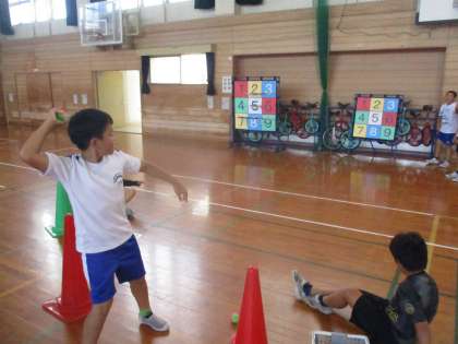 今日は「祭り」の日で、大根抜き、ストラックアウト、大縄、スーパーボールすくい、水鉄砲を行いました。