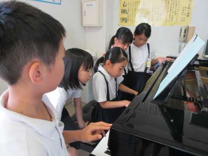 休み時間になると、音楽室に集まって、ピアノを弾いたり、歌を歌ったりしています。