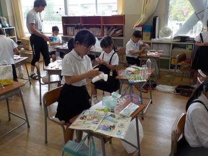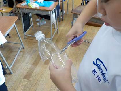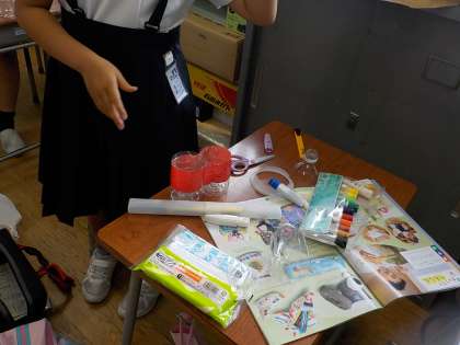 今日の図工の時間は、「空き容器の変身」の続きでした。今回は、本体をくっつけたり、紙粘土に着色したりしました。何を入れるための物なのか、どんな仕上がりをめざすのか、自分の思いを大切にしながら、楽しそうに取り組んでいました。