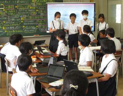 今日の国語の学習では、今まで各グループで書いてきた提案文を発表して聴き合いました。どのグループも体験したことや調べたことを基に課題を見いだし、解決方法を提案していました。