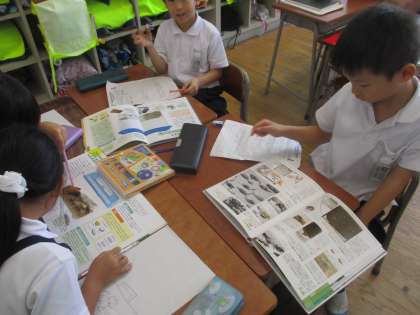 生活科「むしとなかよし」では、虫を飼うために飼い方を調べています。学校では図書室の本を使って調べたり、自分が調べてきたことを友達に伝えたりしています。来週行く公園にどんな虫がいるか楽しみにしている子供たちでした。
