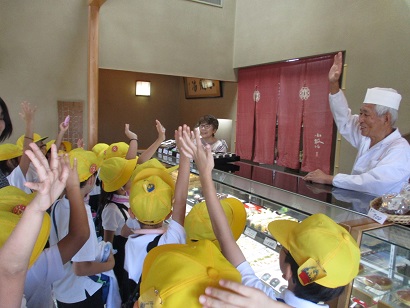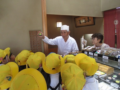 生活科の学習で、小鍛冶本舗を訪問した子供たちは、季節のお菓子を見せてもらいました。インタビューを通して、お客さんのために和菓子をつくり続けるお店の方の思いを知ることができました。