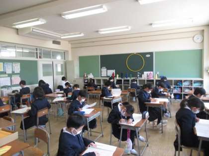 学力調査1日目の子供たちです。最後まであきらめずに問題を解こうとする姿がすてきでした。明日もがんばってほしいです。