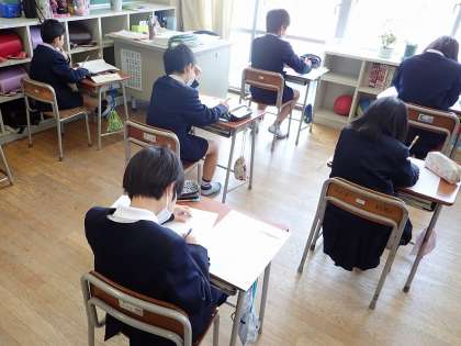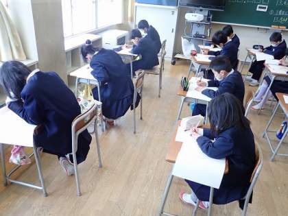 今日は、学力調査の算数と理科を行いました。昨日と同じように、できる限りの問題を解こうと頑張っていました。