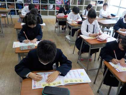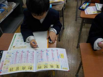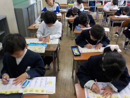 新しい漢字を学習しました。止め、はね、はらい、書き順に注意しながら、練習しました。3年生になって、これからもたくさんの漢字を学習します。一生懸命練習して、しっかり覚えたいですね。語彙力を高めるためにも、練習するときは「熟語」の形で練習しています。