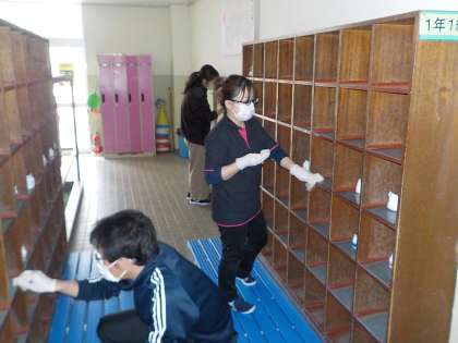 先生たちは、学校の掃除をしたり、これからの勉強や行事の計画を立てたりと、今できることを考えてがんばっています。桜っ子のみなさんも、勉強、運動、読書、お手伝いなど、今、自分にできることを考えてやってみましょう!