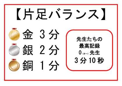 そして、これらの運動には、桜谷小学校の先生たちも挑戦しています。先生たちの最高記録ものせてあるので、金メダルの記録を達成した人は、先生たちの記録にも挑戦してみてください。