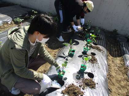 ゴールデンウィークが終わり、みんなに会えると思っていたのに、休業が延長になってしまいました。そこで、2年生で育てる野菜の苗を先生方で桜っ子農園に植えました。