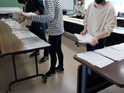 今日、来週の学習予定や学校からのお知らせを発送しました。宅配便で届く予定です。