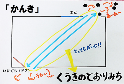 「かんき」をすると、へやの「くうき」がきれいになります。