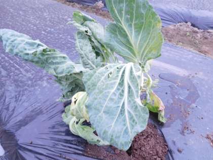 3年生の畑に、キャベツをうえてみました。(モンシロチョウ?のよう虫つき)