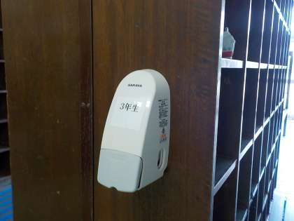 桜っ子のみなさん、学校に着いたら、まず、手指をしっかり消毒しましょう。