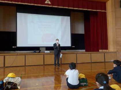 桜っ子が登校完了したところで、今日の全校集会を行いました。校長先生から、「みんない会いたかったよ、これからも、しっかりと生活していきましょう」と、お話がありました。子供たちは、よい姿勢で、整然と話を聞いていました。